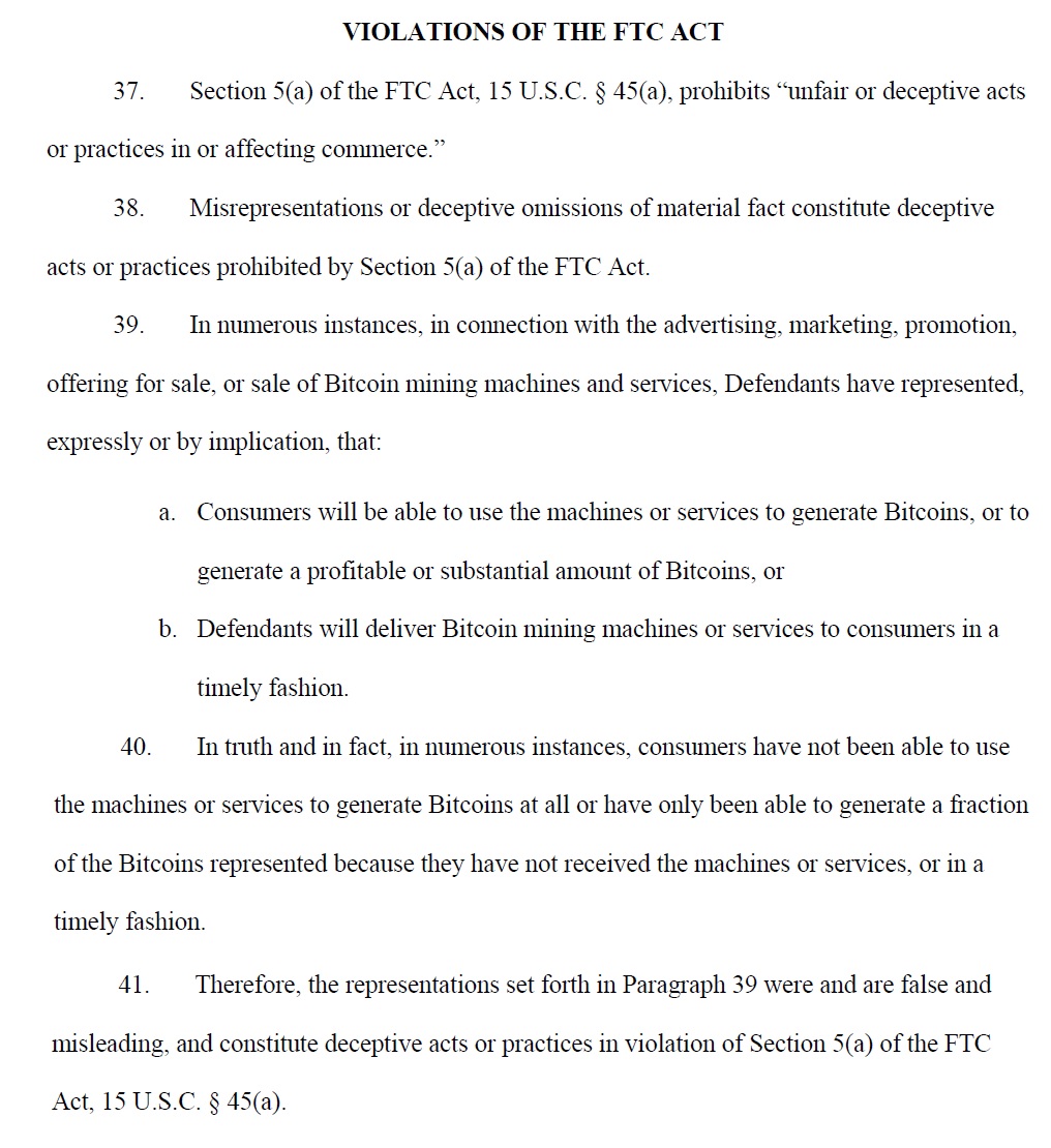 –Because the products were shipped so late (or not at all), the rigs were incredibly outdated, and because of that, miners couldn’t use the rigs properly. (Via FTC):